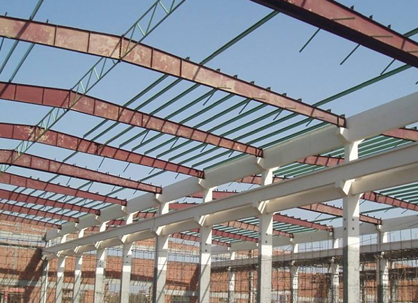 專業生產鋼柱、鋼梁、C型鋼、水平系桿、水平支撐、網架、桁架、膜索結構、天溝、樓承板、夾芯板、巖棉板、保溫棉、鋁箔鋼絲網、840型彩鋼瓦、